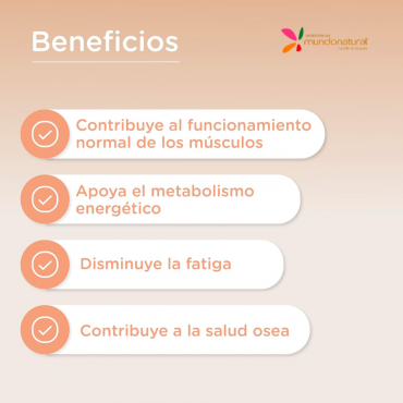 El magnesio contribuye al normal funcionamiento normal de los músculos, al funcionamiento normal del sistema nervioso, al metabolismo energético normal,