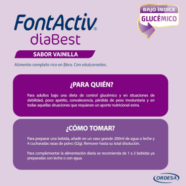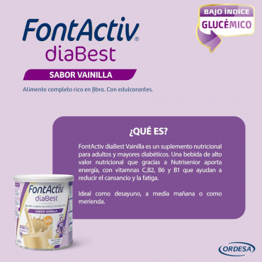 Y además, complementando a los nutrientes del complejo Nutrisenior, FontActiv diaBest se caracteriza por: