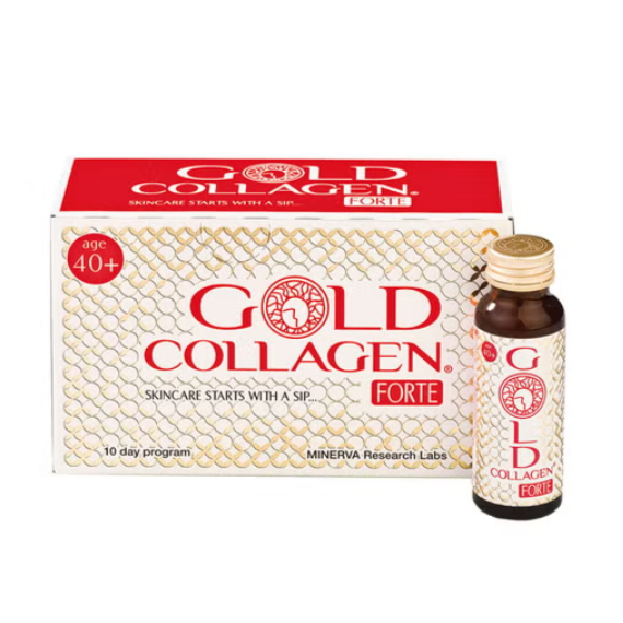 Gold Collagen Forte 10x50ml es un nutricosmético indicado para mujeres a partir de los 40 años que contribuye a reforzar la piel, cabello y uñas, a la vez que apoya el equilibrio hormonal, la salud de articulaciones y el sistema inmune.