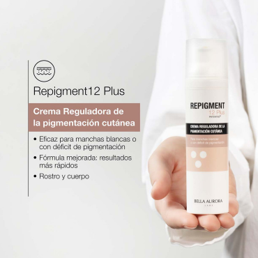 Para favorecer la repigmentación, aplicar después de la crema reguladora de la pigmentación cuntánea Repigment12 Plus.