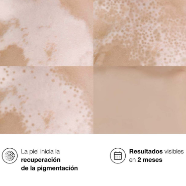 Especialmente elaborada para manchas blancas o con déficit de pigmentación. Fórmula mejorada: resultados más rápidos.