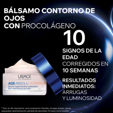 Innovación de AGE ABSOLU, nuestro bálsamo contorno de ojos difumindor redensificante antiedad global estimula la síntesis de procolágeno X6 para