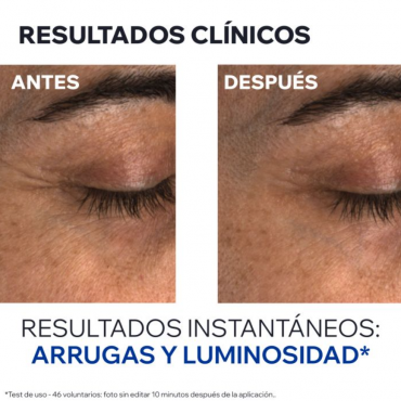 En 10 semanas: se corrigen 10 signos de la edad (flacidez, arrugas, bolsas, ojeras, sequedad, deshidratación, pérdida de firmeza, elasticidad, densidad y luminosidad). La piel se alisa, los párpados parecen más tersos y radiantes. Las bolsas y ojeras mejoran notablemente.