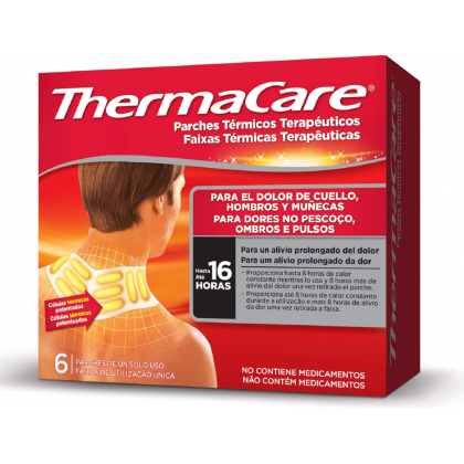 ThermaCare® cuello, hombros y muñecas está indicado para tratar el dolor muscular y articular inespecífico en las zonas del cuello,