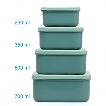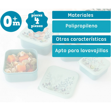 Incluye contenedores de varios tamaños, adecuados para almacenar todo tipo de snacks, desayunos o meriendas.