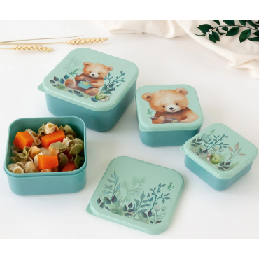 Este set de 4 contenedores de Kiokids está adornado con encantadores diseños de osos, haciendo de la conservación de alimentos una experiencia