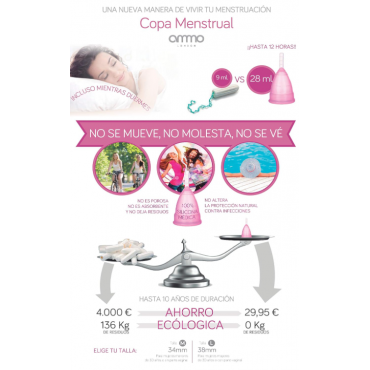 La copa menstrual ammo, es una alternativa, saludable, segura e higiénica a compresas y tampones. Puede recoger 3 veces más líquido en