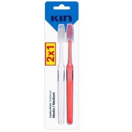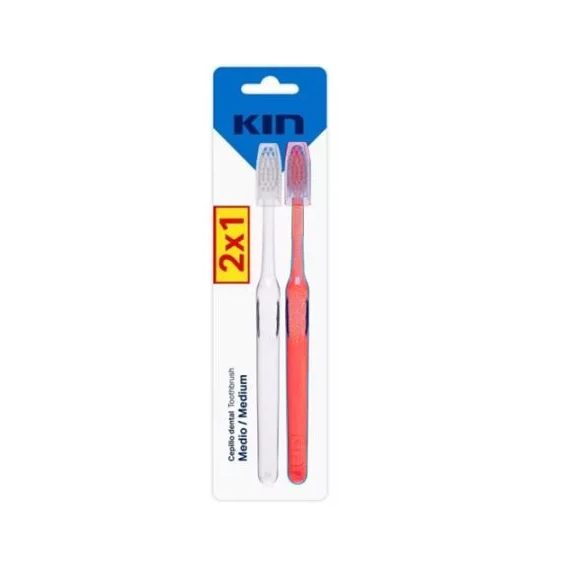 Kin Cepillo Dental Medio Pack Rojo / Transparente 2 unidades