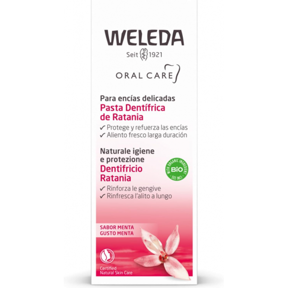 Pasta de dientes para encías sensibles formulada con extracto de ratania 100% natural.