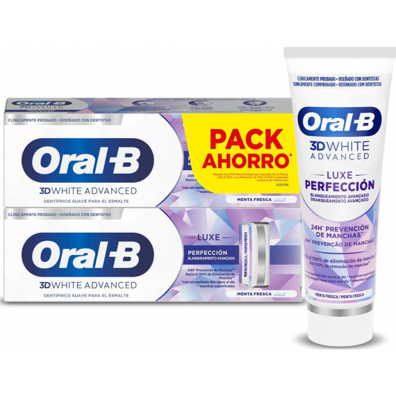 La pasta dentífrica cuenta con la tecnología de blanqueamiento de Oral-B. Blanquea eliminando las manchas superficiales desde el primer cepillado,