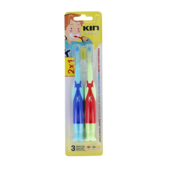 Kin Cepillo Dental Infantil Azul y Verde 2x1