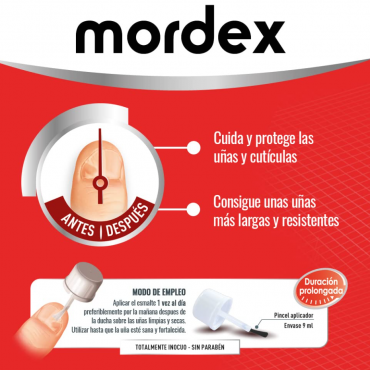 Mordex se puede utilizar cuantas veces se requiera y durante el tiempo que sea necesario, hasta que la uña esté sana y fortalecida.