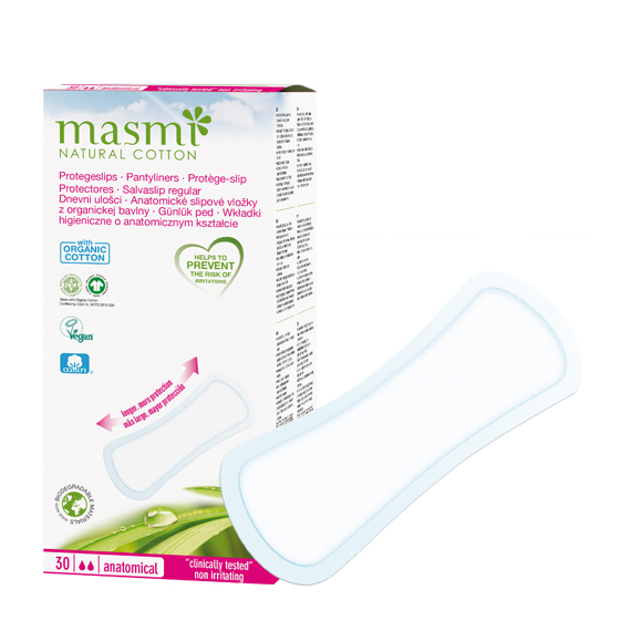 Masmi Protegeslips是由生态材料制成的。它们对皮肤非常柔软,是日常使用的理想选择。