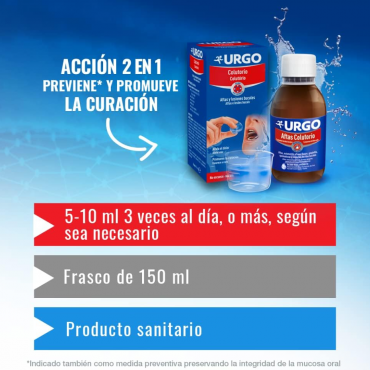 Urgo Aftas Colutorio指的是口臭和口臭、溃疡、牙龈炎、烧伤、口腔小伤口和口腔粘膜损伤,这些损伤是由手术、正畸器械和假牙引起的。本产品不含糖。它不含酒精,也不缩水。