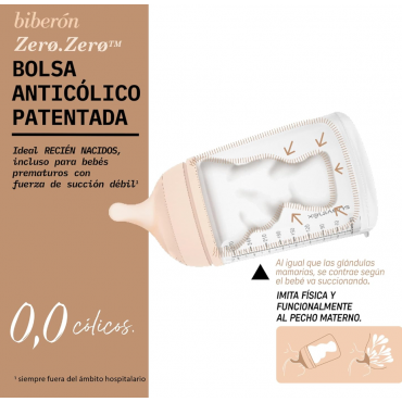Zero Zero抗绞痛奶瓶的工作方式与乳腺相同。它的系统使气泡消失,通过避免吸入空气来减少婴儿的痉挛。从一出生就建议使用奶瓶,即使是吸力较弱的早产儿。