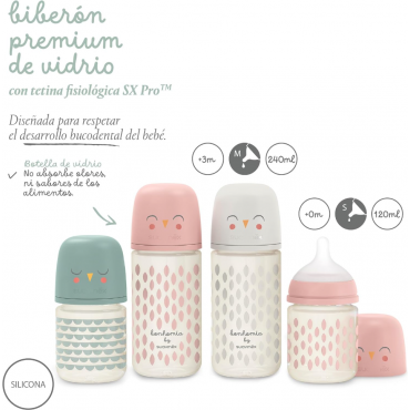 Tetina SX Pro生理硅胶,平面和对称。它的设计是为了尊重婴儿口腔的发育。