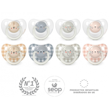 它们有两种包装,一种是白天用的,另一种是晚上用的,尽管这两种奶嘴都有一个发光的环,在黑暗中闪闪发光,如果婴儿摔倒了,可以很容易地在婴儿床上找到奶嘴。
