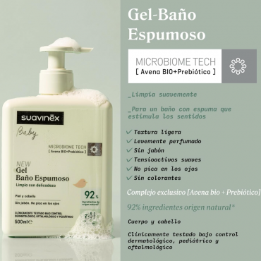 新的天然复合微生物技术,结合静脉生物(平静和保湿)+益生元剂(有利于平衡婴儿皮肤微生物组)。