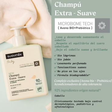 这款超柔软的洗发水轻柔地清洁宝宝娇嫩的头发。使用天然复合物[BIO +益生元静脉]保持头皮表皮的整体平衡,促进您的健康。