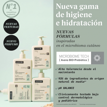 新的天然复合微生物技术,结合静脉生物(平静和保湿)+益生元剂(有利于平衡婴儿皮肤微生物组)。