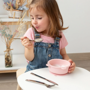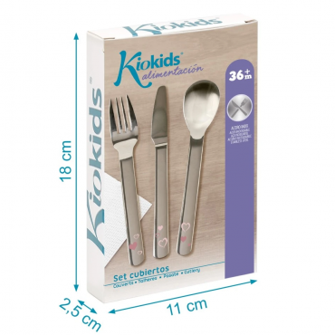 Kiokids粉红色不锈钢儿童餐具+36个月