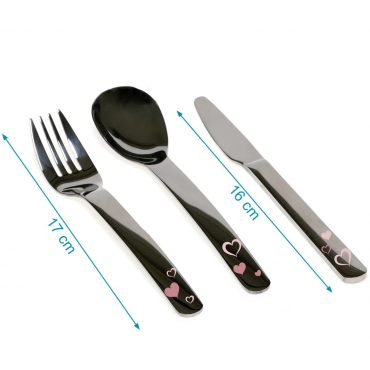 这个设置三个儿童餐具(不锈钢勺子、叉子和刀)是所有稍微年长一点的儿童已启动认真使用其他类型的覆盖,我们希望给下一步habituándose使用餐具我们尽可能相像的成年人。