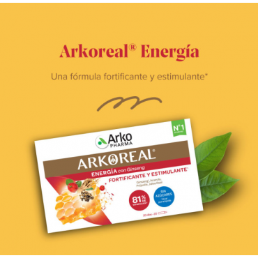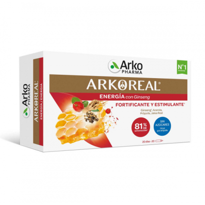 Arkopharma Laboratorios开发了Arkoreal Energy,这是一种优质的专利配方。不含糖(1千卡/安瓿),不含防腐剂,不含化学成分。