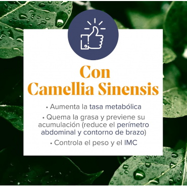 多亏了Metabolaid,一种完整的天然提取物(马驹提取物,芙蓉花和绿茶)与山茶花结合,可以提高新陈代谢率,帮助燃烧脂肪,防止脂肪堆积,帮助控制体重,提高身体质量指数(BMI)。