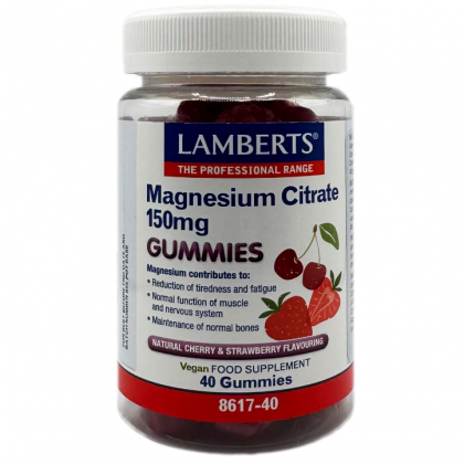 Lamberts®柠檬酸镁gominola提供150毫克的元素镁,具有樱桃和草莓的味道。它们以柠檬酸的形式提供镁,由于其高生物利用度,可以最大限度地吸收人体。