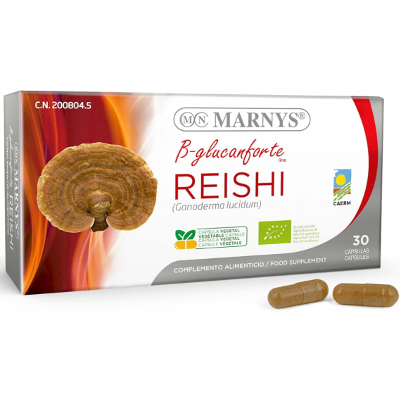 MARNYS®β-glucanforte Reishi含有有机认证(BIO)蘑菇Ganoderma lucidum,在12:1干提取物中,提供20%的β- glucanos含量。