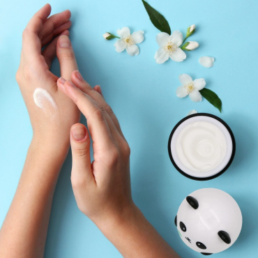 在干净干燥的双手上,涂抹适量的面霜,轻轻按摩,促进吸收。