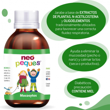 Neo Peques Mocosytos是一种天然补充剂,旨在缓解咳嗽,减少粘液,提高儿童的呼吸流动性。