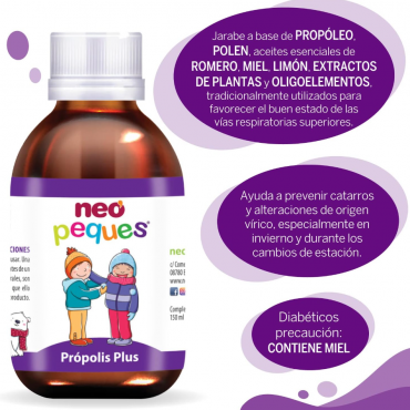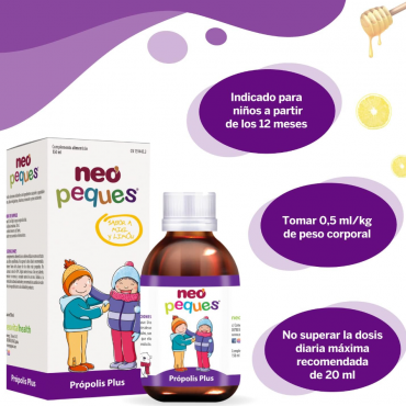 Neo Peques Propolis Plus加强免疫系统,保护儿童的呼吸道。它的混合丙烯,花粉,紫锥菊和百里香有助于预防感冒,缓解咳嗽和缓解喉咙刺激,在季节变化时是理想的。